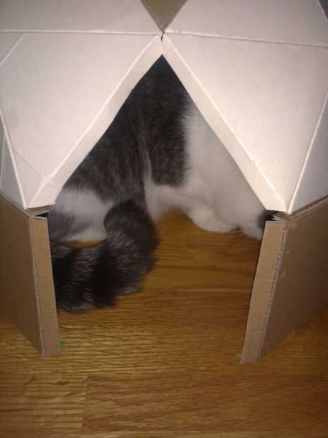 Algunos gatos, como el Täplä ("punto" en finlandés), no como lugares cerrados y prefieren establecer en una cama de gato con un borde o en cajas de cartón, pero nuestro otro gato Hilu, que le gusta encontrar lugares pequeños, cómodos para dormir en, le gusta esta cúpula realmente mucho y comenzó a dormir en él. :)
