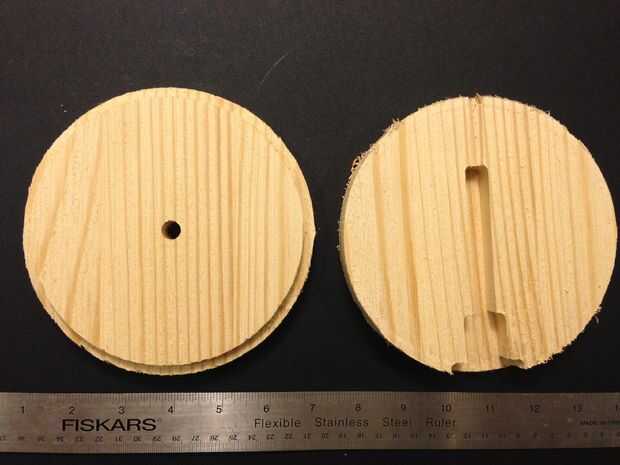 Si usted planea usar un router CNC, como lo hice, supongo que tienes cierta familiaridad con el equipo, por lo que se trata más de un recordatorio. En primer lugar, tomar las imágenes de archivo de dos vector creadas al final del paso anterior (uno para la base) y otro para la parte superior y CAD/CAM software para convertirlo en el formato de archivo adecuado para la máquina que va a utilizar. Desde mi experiencia personal, asegúrese de que extender los recortes en la base más allá de los bordes del círculo para que los bordes se cortan totalmente. A continuación, configurar el material de la cama de la máquina y fijarlo usando tornillos de madera (colocados en las esquinas para que estén fuera del camino) o una mesa de vacío (si la máquina está equipada con uno). Por último, poner un 1/4" de la broca en la máquina, realizar una carrera de prueba sobre el material (para asegurarse de que la trayectoria de la herramienta parece correcto) y luego cortar las piezas.
