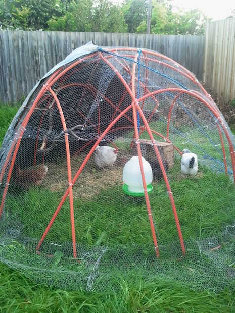 Hice mucha investigación y finalmente encontró que un ' domo geodésico ' forma más estructuralmente sonido, portable y amplia para construir. Como no tenemos una cantidad enorme de espacio, necesitaba modificar el diseño un poco para asegurarse de que era bastante alto y tenía un diámetro conveniente para nuestros planes. Así que ahora tenemos una cúpula de chook basada en un diseño geodésico, que es lo suficientemente ligero como para desplazarse por el jardín.