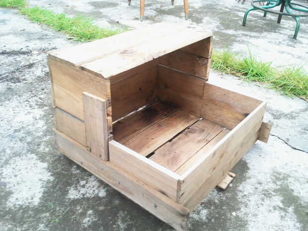 También construí una caja de nidificación fuera de unas viejas cajas de madera, pero el receptor de un cortacésped viejo, los cajones de un viejo aparador o cualquier envase de la caja va a hacer bien. Creo que la mayoría de la gente recomienda un nidal para sobre aves de 4 a 6.