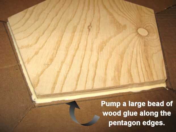 A continuación, bomba una cantidad abundante de pegamento de Elmer madera a lo largo de los bordes del Pentágono madera, esta a un lado a secar durante la noche completamente dura.