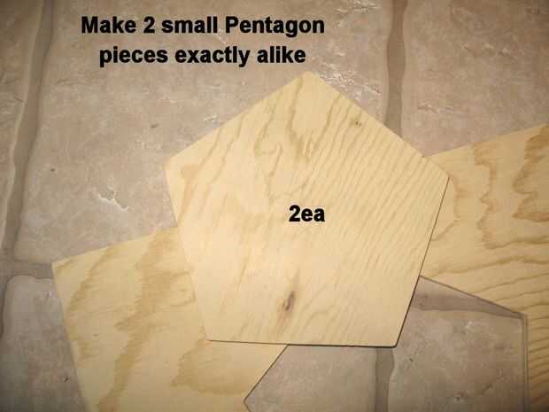 Corte ambos hacia fuera usando un jig sierra o sierra de mesa, cortan limpiamente a lo largo de las líneas de borde que estén ambos idénticos. Ahora puedes tomar uno de los pentágonos y trace una línea a través de los puntos dos (ver fotos) es donde usted cortará esta sección.