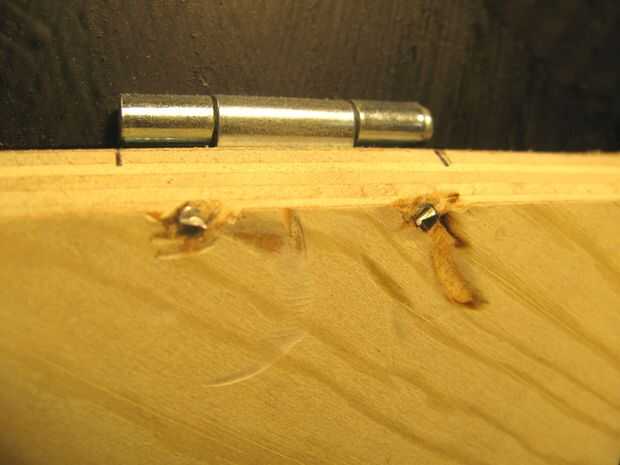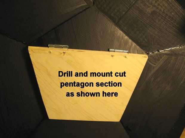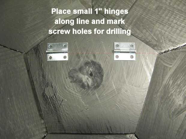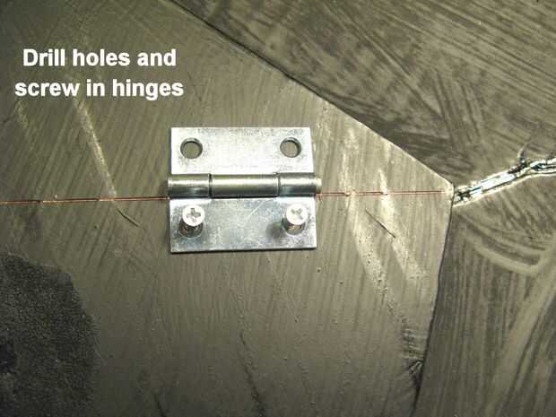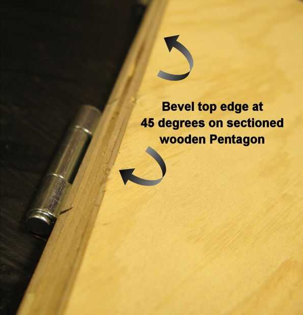 Ahora pinte esta sección completa y esperar hasta que se seque. La segunda sección estará montado, compra algunos baratos 1" bisagras en una ferretería, cualquiera y alinear a una línea de pre dibujado tendrá que hacer que se extiende a través de los puntos de dos del estrellas de la forma de Pentágono (ver fotos).