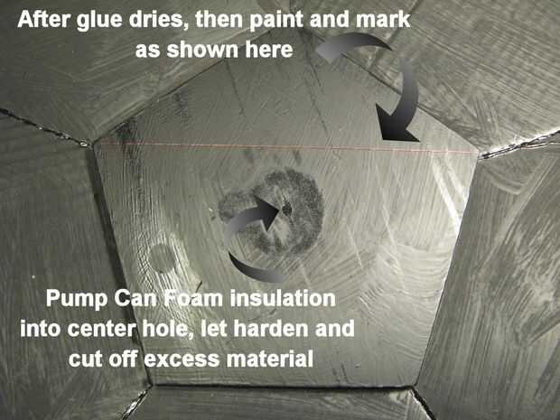 Ahora se utiliza el orificio de 1/4" que ha perforado previamente en este Pentágono completo madera a la bomba una pequeña cantidad de aislamiento puede, esto endurecerá dentro del cavidad de vacío y ser bastante sólido, que todo el conjunto muy fuerte e irrompible. La pared tendrá 25-30 libras sin preocupación.