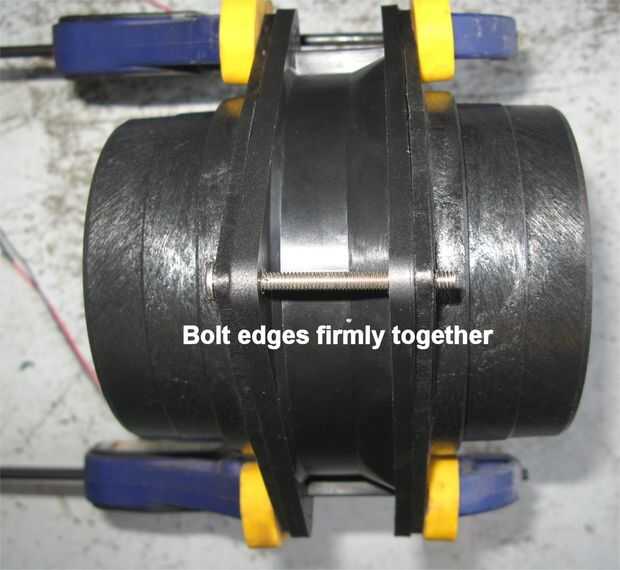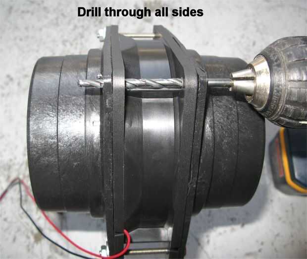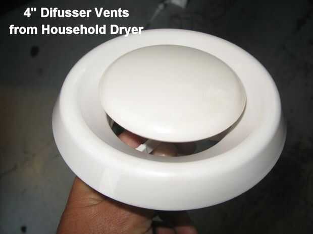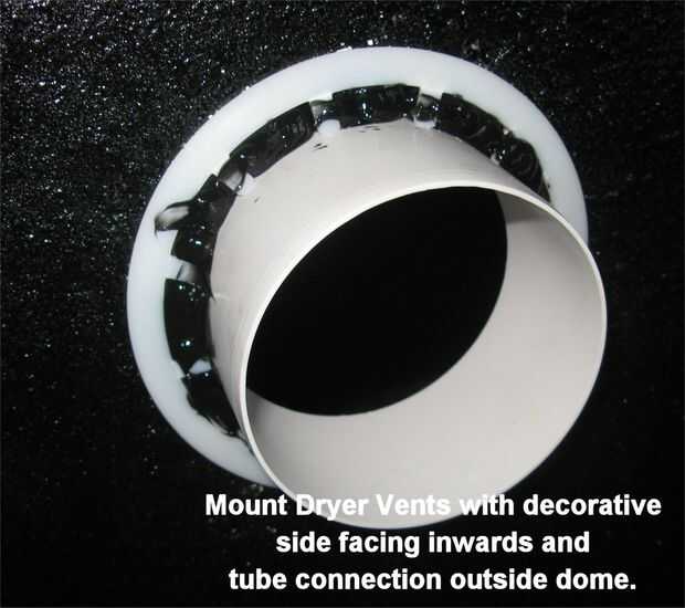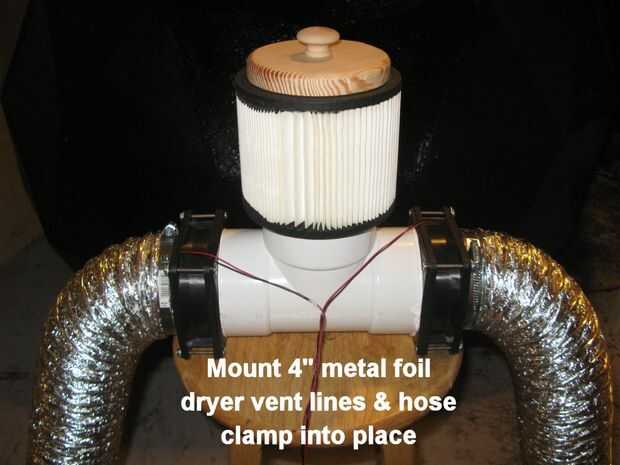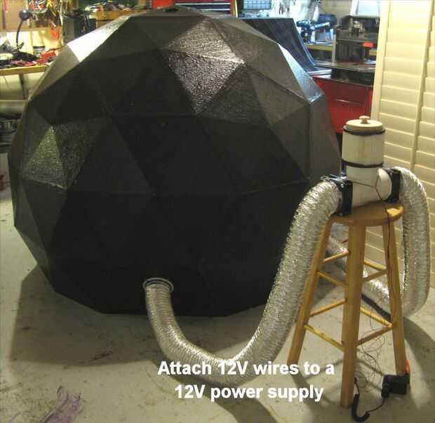 Conecte las 4" metal secadora ventilación las líneas a la bomba de aire, cortar dos agujeros de 5" de diámetro a través del centro de dos de las paredes del Pentágono media base y montar las dos tapas del ventilador secador como se muestra en las fotos.