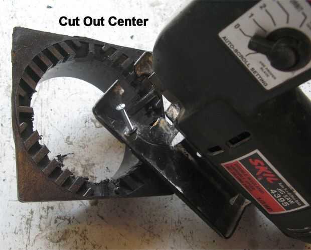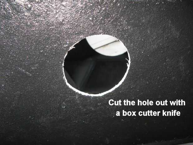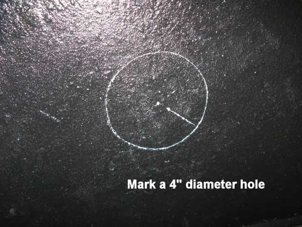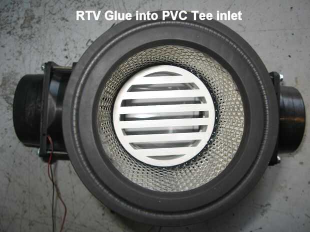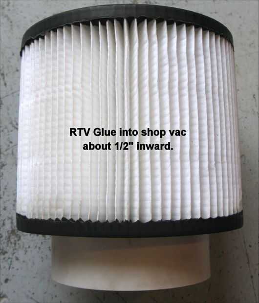 Después de la RTV se seca durante la noche, inserte los 4" redondo desagüe de cubierta en el filtro de aire aspiradora Shop y pegamento para arriba en el filtro de 1/2".