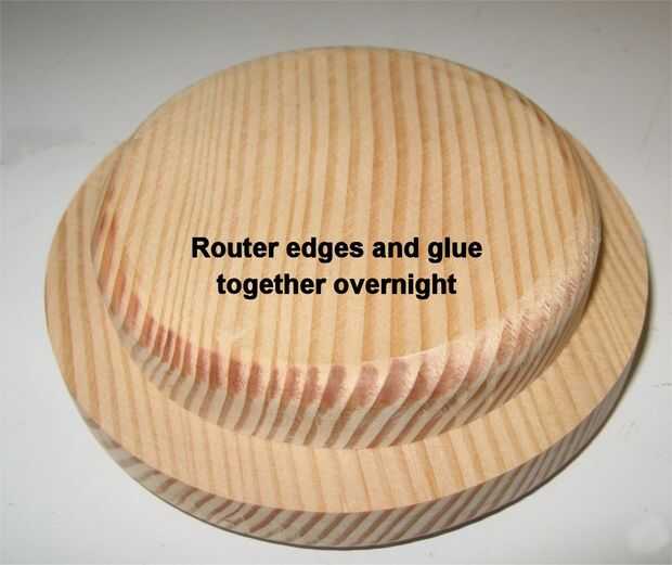 Hacer la tapa para el filtro por cortar dos discos de algún pino blanco, cada disco debe ser de 4" y 5" de diámetro, enrutador de borde de uno de cada disco y junte y abrazadera con una pequeña cantidad de pegamento entre los discos. Perfore un orificio de 1/4" a través del centro y montar una manija de perilla de madera.