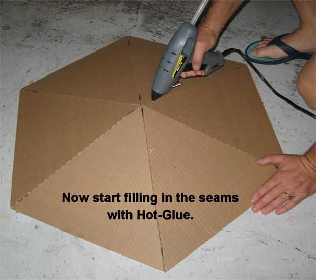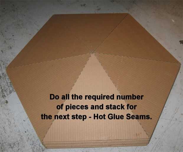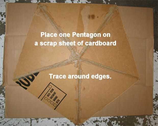 5 pentágonos medio individual, ninguna plantilla, sólo utilizar un Pentágono montado como una plantilla. Este es el componente más fácil de hacer y sólo se utiliza a lo largo de la base de la cúpula.