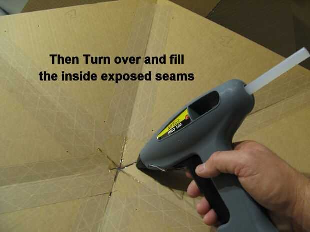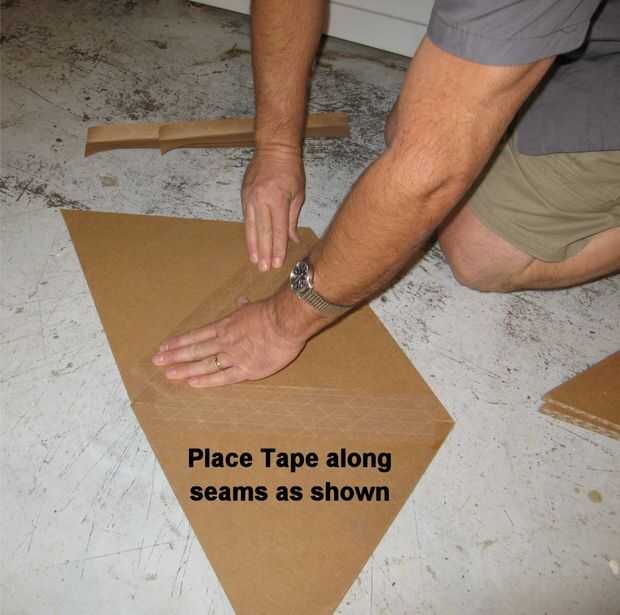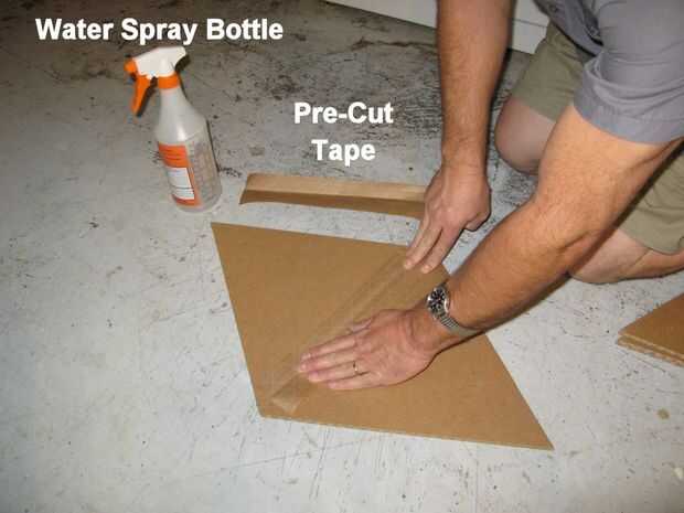 Rocíe la cinta con agua y colocar sobre la costura y presione firmemente hasta que aferra. Luego coloque otro "Un" triángulo de lado a lo largo de la próxima "A" del borde y esta costura la cinta también.