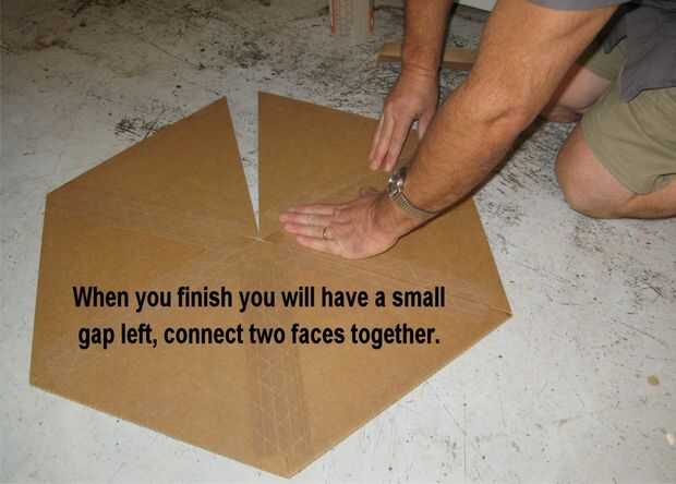 Siga las imágenes y seguir trabajando hasta que se han reunido todas las piezas de cada hexágono y Pentágono.