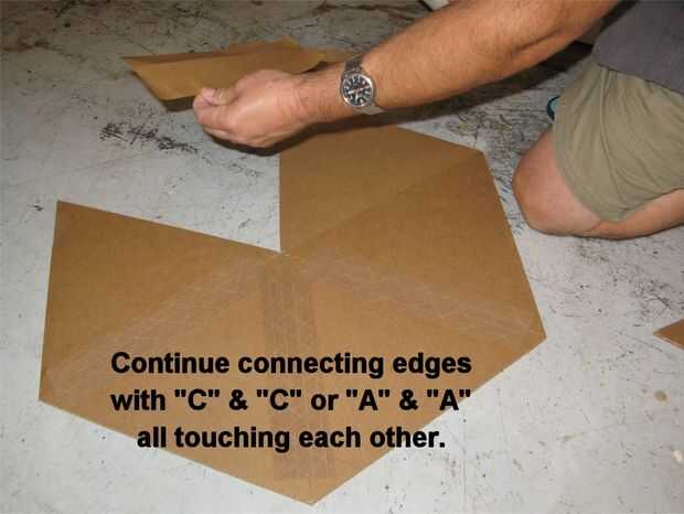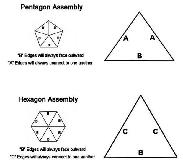 Recuerde: Todos "A" ajuste a los lados "A" y "C" lados los lados forma "C" lados, lados "B" se enfrentarán siempre hacia fuera a los bordes del Pentágono o hexágono.