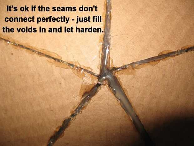 Empezar colocando 2 "A" lados juntos si están haciendo las formas del Pentágono primero, corte una tira de cinta de la caja de papel reforzado que es suficiente para cubrir la costura.