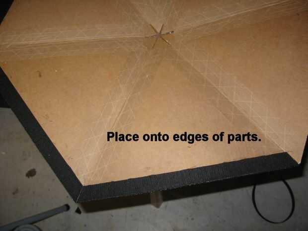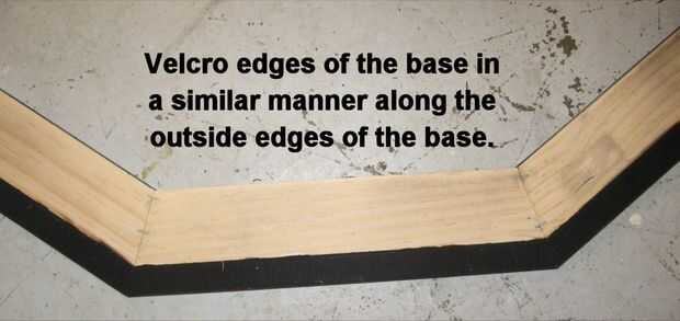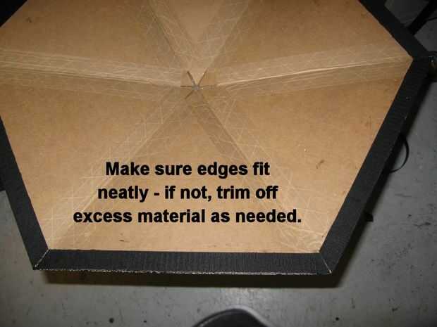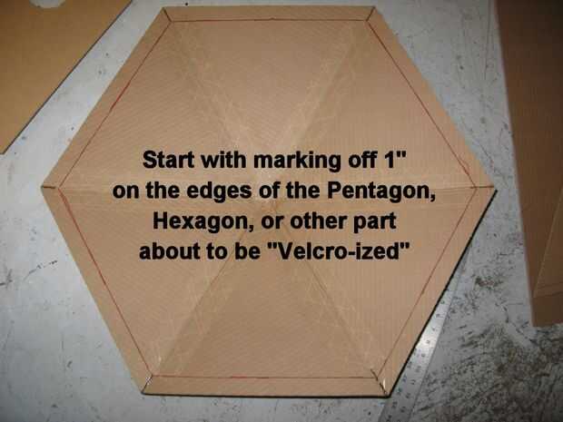 Inicio usando el acabado pintado hexágonos y pentágonos, así como las piezas de medio Pentágono que ha creado, las porciones no-pintadas interior son donde podrá RTV pegamento en la cinta de Velcro a lo largo de los bordes exteriores. Sellador de caucho de silicón RTV negro puede adquirirse en Lowes y Home Depot en un tubo de masilla típico.