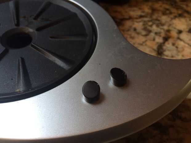 Esta cubierta es el elemento más difícil de quitar y poner. Usted verá por qué a medida que avanzamos a través de este servicio. En primer lugar, con el mango totalmente abierta, usar su puntiagudo agudo con cuidado tirar que el plástico pequeño cubre hacia fuera. Se deslizan hacia fuera muy fácilmente pero es difícil conseguir los iniciado, por lo tanto, la necesidad de una punta muy fina. En la reflexión, una tachuela plástica probablemente funcionaría mejor que un cuchillo. Si utilizas un cuchillo, sin embargo, tenga cuidado! La pala envuelto en una toalla de plato ayudaría a prevenir lesiones, así como mantener la mano libre encima de la máquina, lejos de la cuchilla.