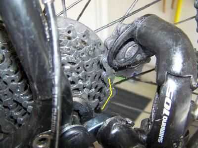 Parte de la frustración es que un piloto no puede ver lo que está sucediendo entre la cadena y los piñones mientras que a caballo. Observe la línea amarilla de la cadena en la foto. No es normal que la cadena que la curva resaltada en la línea amarilla. La curva podría ser debido a un enlace rígido. Una cadena vieja y gastada es un problema, también. Cambio es mejor cuando la cadena limpia y bien lubricada. El eslabón de la cadena en esta foto está atrapado en un diente de la rueda dentada junto al que desea utilizar. No sólo le ruido de la cadena, sino también saltarán bajo poder con un tipo de clunk que suena terrible. No se preocupe que usted no puede ver durante el recorrido.