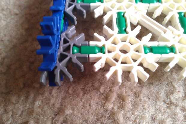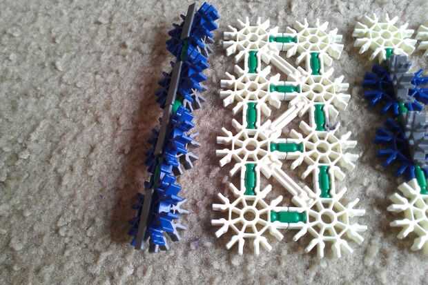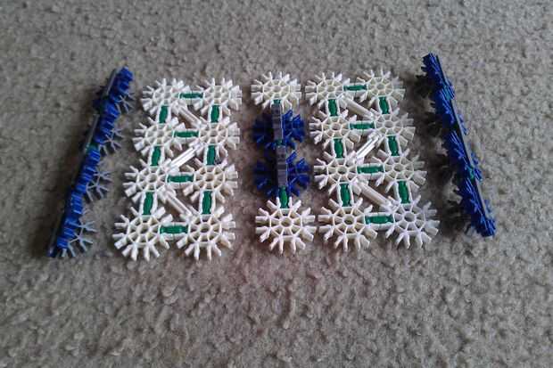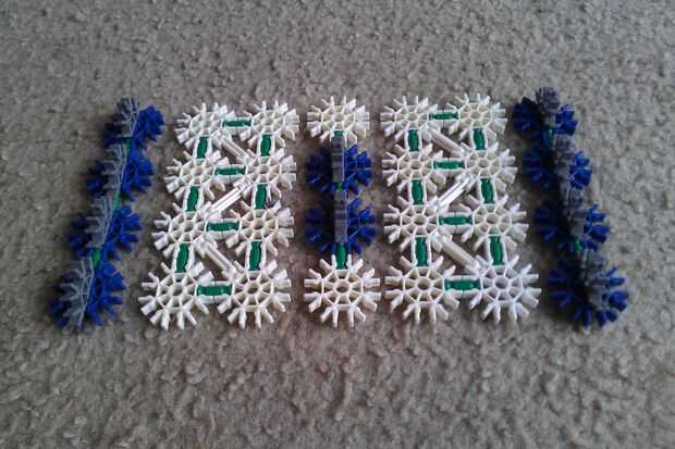 Conectar todas las piezas que hiciste en el paso anterior utilizando barras verdes como se muestra. Asegúrese de que todas las piezas de color gris azulado se enfrentan a las mismas direcciones como en las fotos!