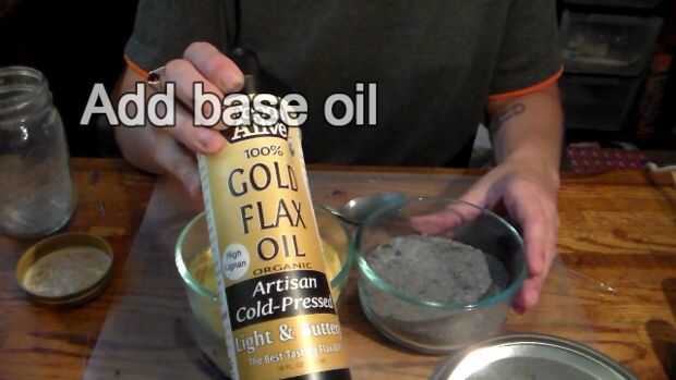 Añadir aceite a 1 plato y remover. Añadir lo suficiente para cubrir la mezcla.
