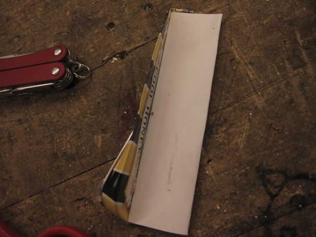 Cómo alto utiliza una pieza depende de usted, pero desea que abarcan desde el borde izquierdo hasta el borde derecho de la montura. La primera foto muestra cómo la medí sin medir realmente, simplemente alinee.