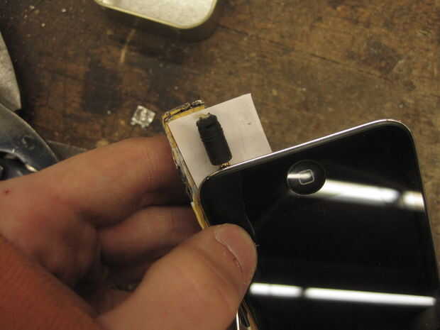 me parece que es la forma más fácil de marcar con precisión donde los auriculares va a necesitar pegar en a enchufe en tu ipod y lo en el Monte el camino que va a pasar cuando se está reunido.