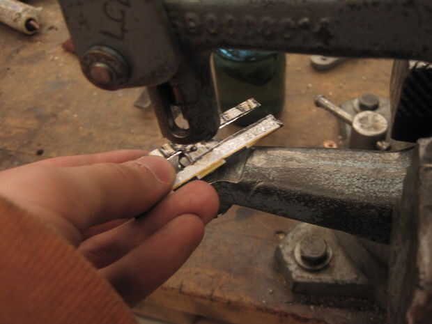 Si tienes un golpe metálico, funciona muy bien. Se puede utilizar la otra pieza de material adicional que le cortamos la mitad grande antes para probar los tamaños.
