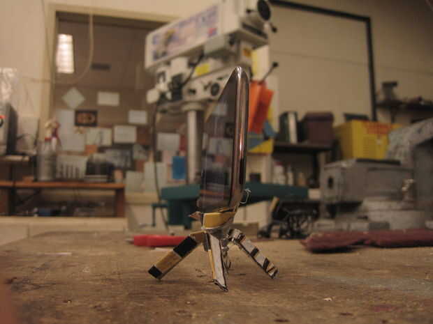 Acabo de hacer un pequeño trípode de montaje y un pequeño trípode tampoco pero QUADRO-POD fuera sólo la tapa de una lata altoids!
