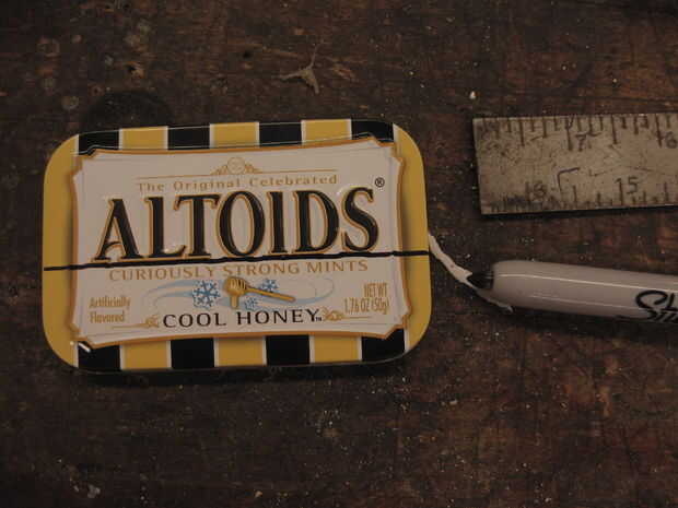 Ni siquiera tiene que medir esto. Sólo tiene que utilizar la parte inferior de la palabra Altoids, las serif y pies y línea de la regla y trazar la línea.