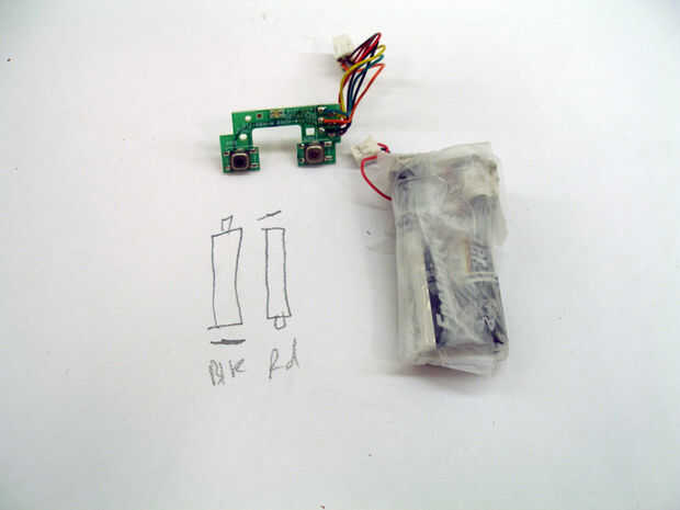 El original pilas AA y vivienda no van a importar. Cortar los cables para usar el tapón y me hizo un pack de AAA con cinta adhesiva y el metal de la carcasa del antiguo. En la segunda foto muestra los conceptos básicos en hacer el paquete.