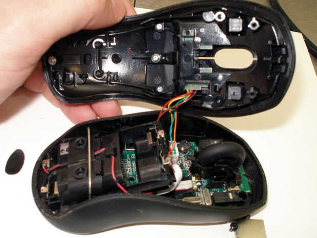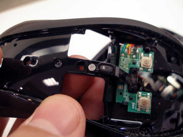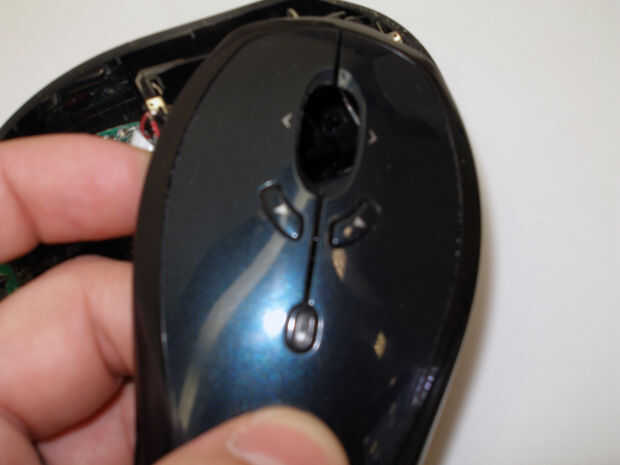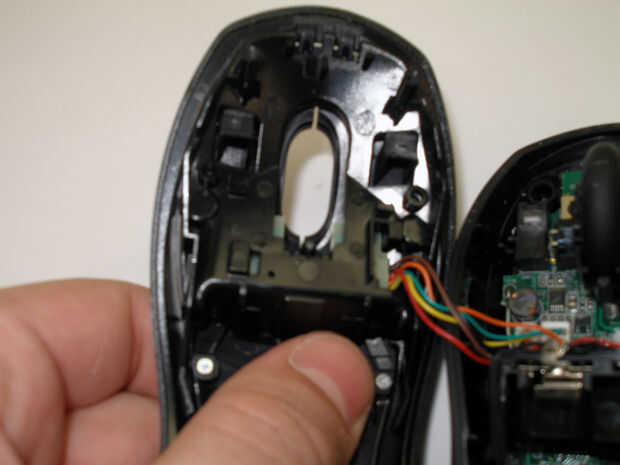 Hay un pequeño tornillo en la parte superior para quitar para bajar lo de LED y poder sacar el chip. Hay solo 2 clips poco que empujan atrás fáciles conseguir el chip gratis. Después de esto puedes ir a la placa principal del mouse y extraiga el conector de 6 pines de blanco y liberará completamente la parte superior.