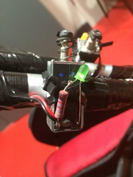 También puse LEDs en cada solenoide para que pueda ver cuando esta activada. Eso es fácil, puede utilizar un 2.2KΩ resistencia corriendo directamente en el solenoide, como la imagen.