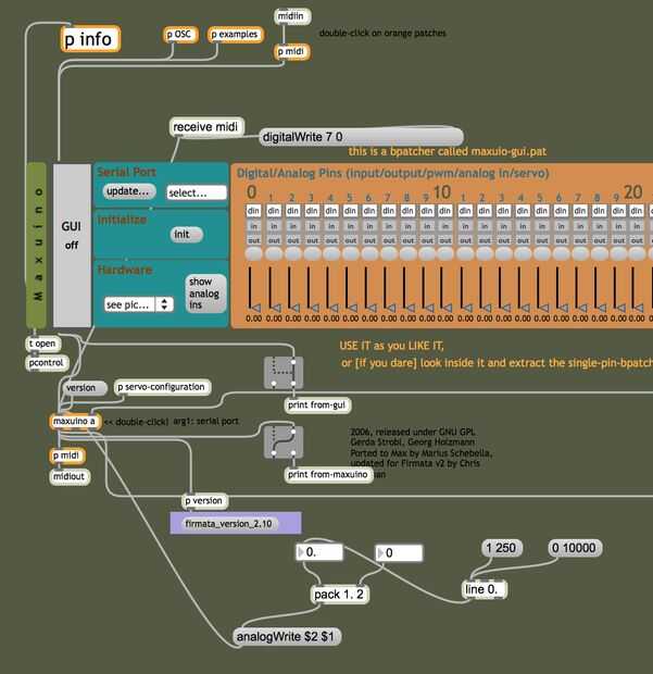 Allí usted puede encontrar la información sobre cómo instalar Maxuino como un objeto para controlar Arduino en MAX/MSP