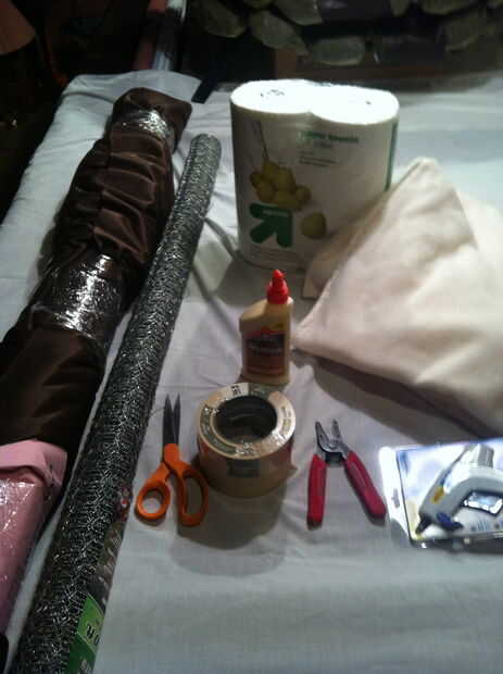 Paso 1) corte el alambre de pollo en una sección de 3,5 X 3.5' que debe ser unos 3 X el tamaño de la cabeza. Usted debe hacer la cabeza más grande de lo normal porque George tiene una bonita cabeza grande en comparación con su cuerpo. No quiero acabar con una cabeza que es normal de tamaño porque se verá como un normal cada traje de gorila de día.