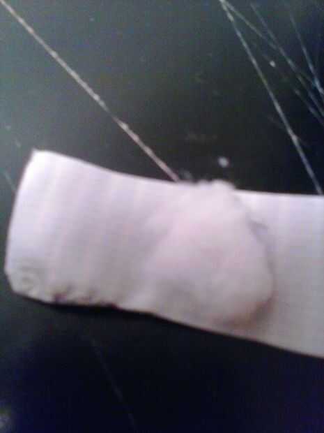 cortar un pedazo de cinta un poco más largo que el corte o raspadura que tienes. luego se pegan un pedazo de algodón lo suficientemente grande como para cubrir su lesión en el centro de la cinta.