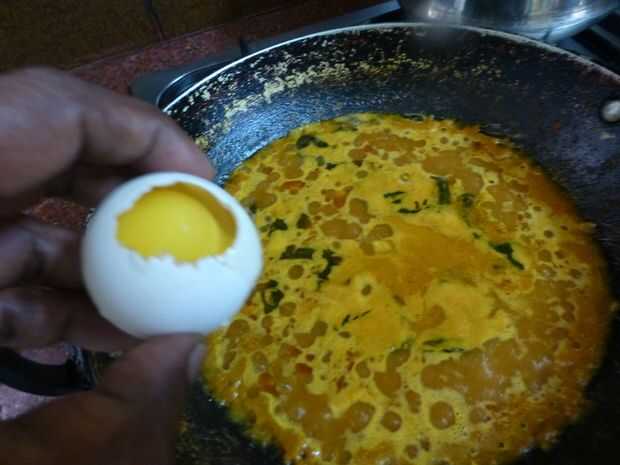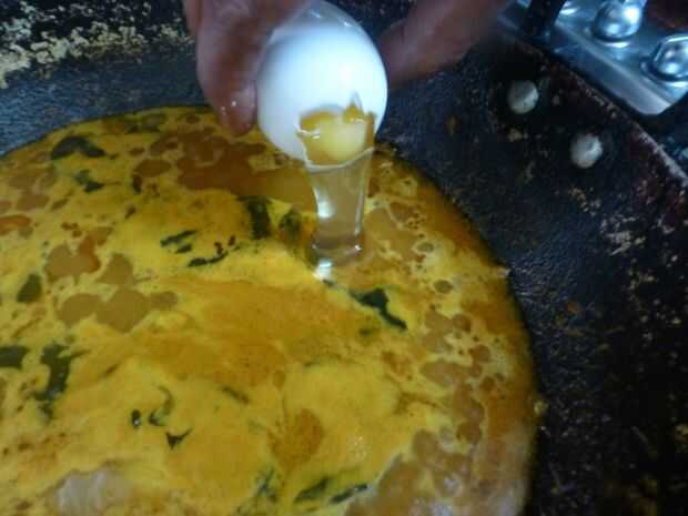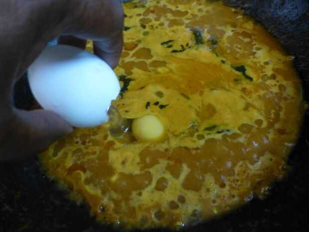 • Añadir los huevos uno por uno a la salsa caliente para que el contenido fuera el huevo se deposita en un solo lugar.
