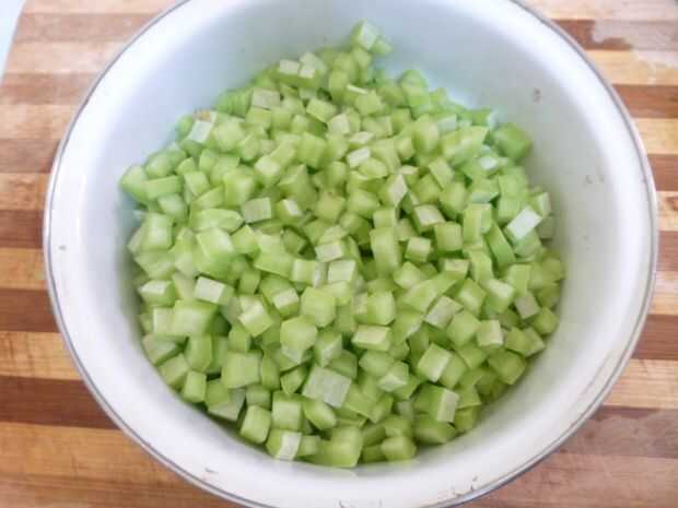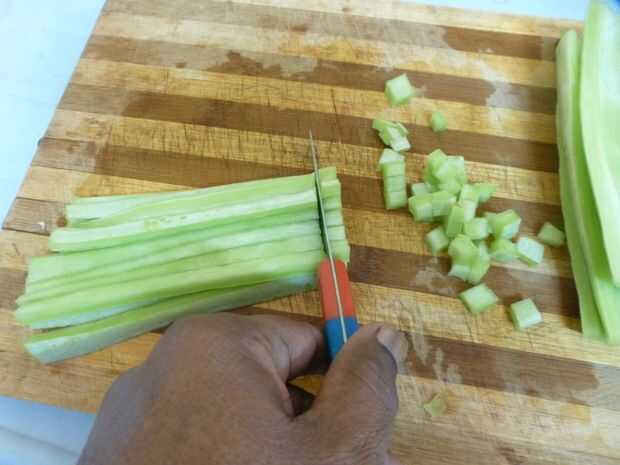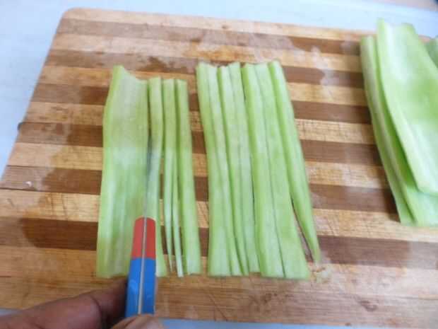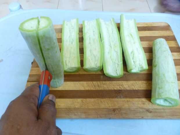 • De fácil manejo y limpieza, cortar la calabaza de la serpiente en pedazos de seis pulgadas