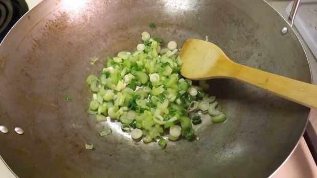 2. Añadir 1 EVOO TBS y saltear verduras para 3 o 4 minutos, o hasta que se empieza a ablandar; retirar del wok.