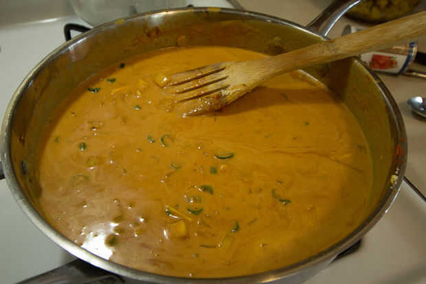 Nam Ya Curry es un poco diferente de otros típico curry tailandés curry verde o rojo curry.Me gustaría decir, es una versión tailandesa de salsa boloñesa, pero con carne de pescado y se sirve con fideos.Es muy fácil y rápido de preparar, la recomiend