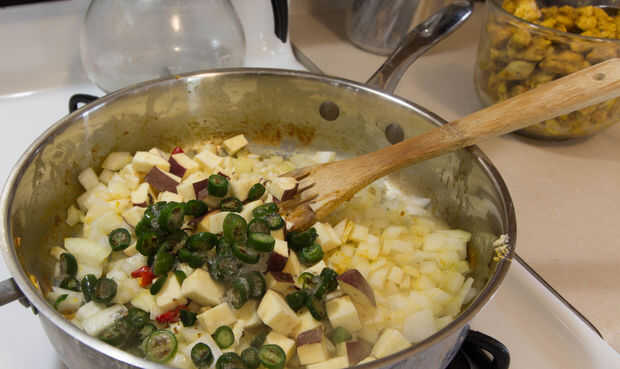 Disfrutar de este curry indio picante caliente chisporroteando y deje que su paladar siente el calor.Paso 1: ingredientesPimienta de chiles verdes o jalapeños - 10Chiles ojo de pájaro - 8Coco seco - 3/4 tazaAceite - 6-7 cucharaditasManí - 1/2 tazaSem