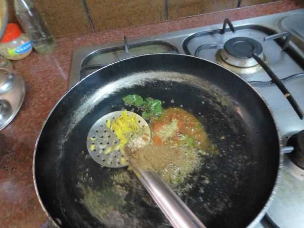 Se trata de un curry delicioso realmente que tienes con arroz para la cena. Un sabor increíble y es realmente fácil de hacer!Paso 1: Añadir cosas al aceite... Vierta el aceite en una sartén.Añadir en algunos ghee si está fácilmente disponible como tr
