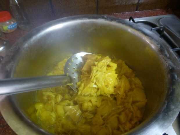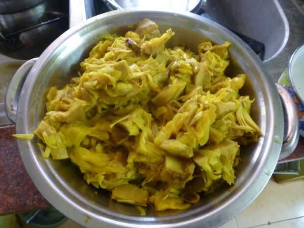 • Una vez que las piezas de jackfruit son completamente cocido y suave al tacto, retirar del fuego.