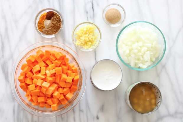 Patatas dulces son una verdura de invierno copioso; Cuando al horno, asado o en guisos, su carne es rica y densa. En esta sopa crema de batata, un poco va un largo camino. Patatas dulces, con un poco de crema y sal, soporte en sopa de su propio en un