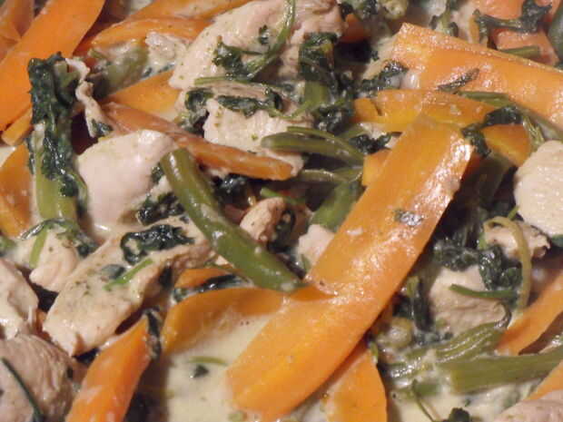 El curry tiene un sabor sorprendentemente fresco, con coco cremoso, bastante ají y un montón de cilantro.