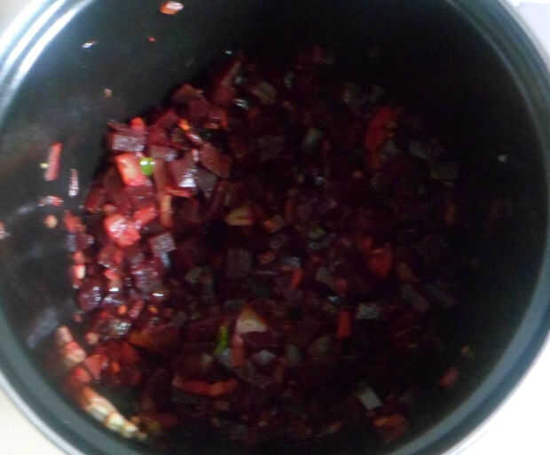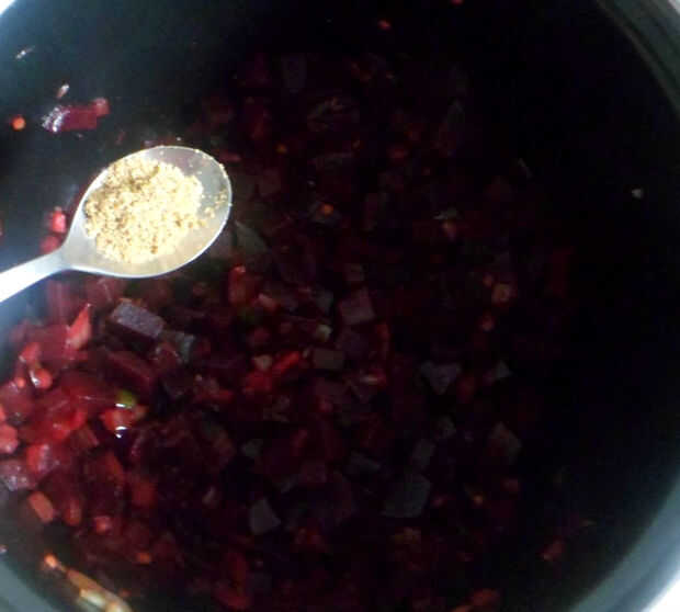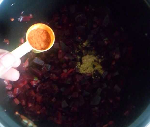 -Remolacha con su rico color rosa profundo, sabor y contenido de hierro buena es muy saludable.-curry se puede comer con arroz o chapati.Ingredientes:-Remolacha-cebollas cortadas en rodajas-rodajas de chiles verdes-semillas de mostaza y comino-polvo