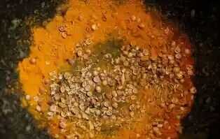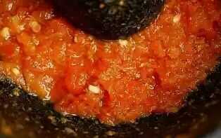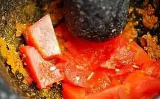 1. en un mortero moler ají, sal, cúrcuma y semillas de cilantro.