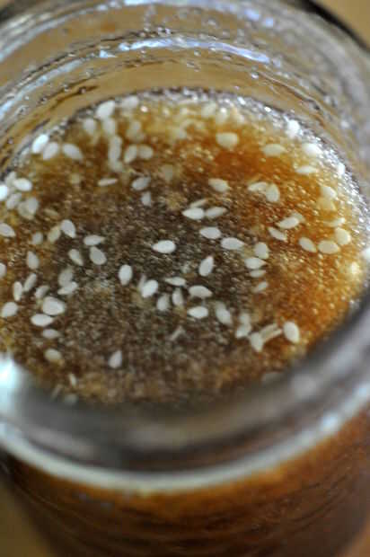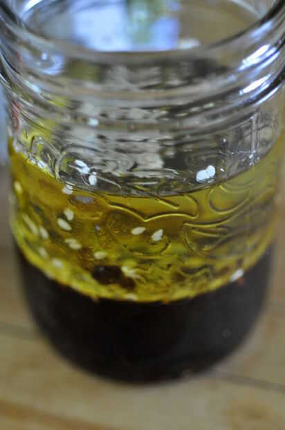 Añadir los ingredientes del aderezo en un frasco o recipiente con tapa.