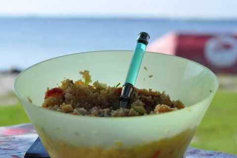 Curry dulce receta de ensalada de arroz de verano (8 / 8 paso)