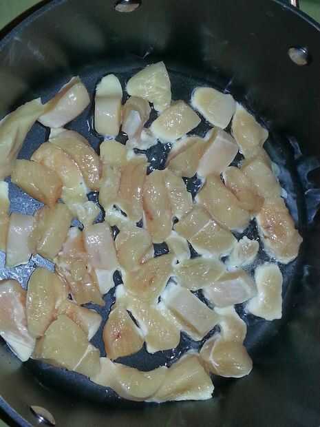 Olla de calor con 1 cucharadas de aceite vegetal a fuego medio alto.