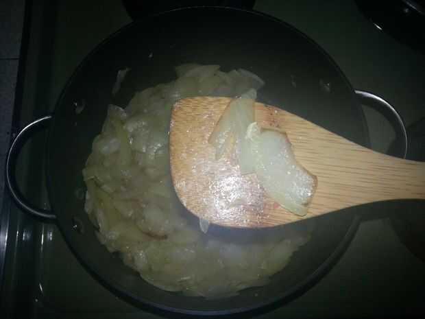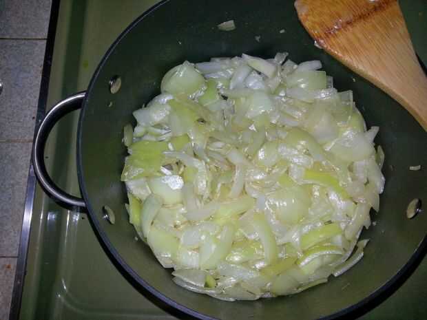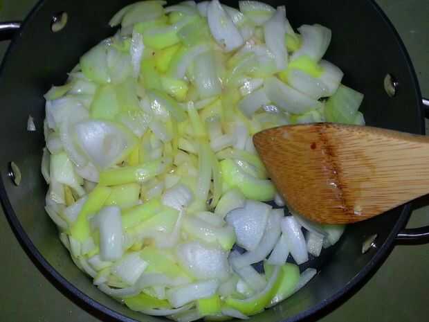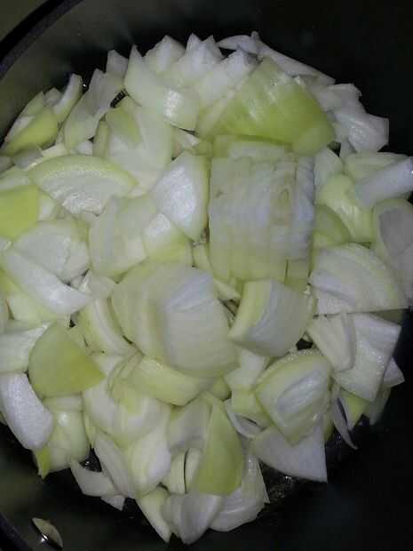 Añadir en el agua según las indicaciones de la salsa de curry; el paquete que estoy usando 3 tazas por 4 ladrillos, dice, pero puede que necesite más o menos (más que utilizar el disolvente va a ser, por lo tanto viceversa en menos utilizas. También disfrutamos de usar caldo de pollo bajo en sodio en lugar de agua para darle más sabor, pero es totalmente hasta usted).