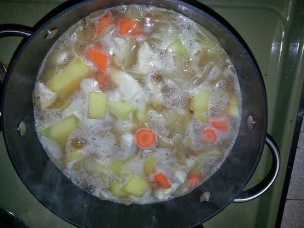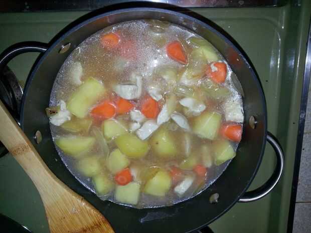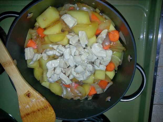 Agregar papas y zanahorias, lo cocine por algunos minutos, cerca de 5 - esto no es demasiado importante, es sólo para conseguir el bote hasta la temperatura.