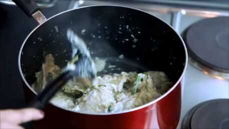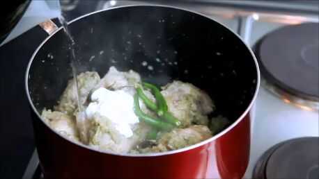 Añadir el yogur, azúcar y guindilla verde. Revolver y poner la tapa y cocine por otros 10 minutos. Es opcional agregar chiles verdes. Video