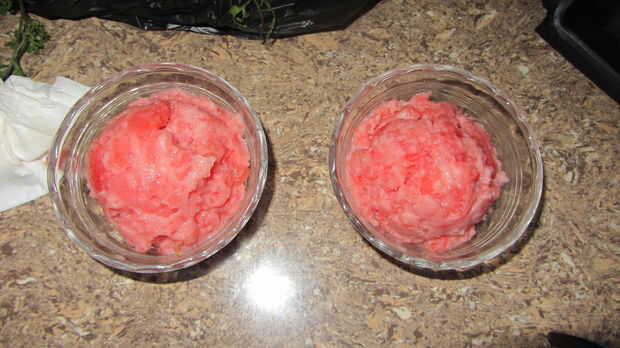 Paso 3.) Coloque el sorbete en dos tazones de fuente y colóquelo de nuevo en la nevera.